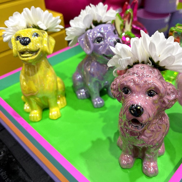 Giv din indretning et legende og charmerende touch med dette sæt af kattevaser i dolomit. De skinnende glasurer og unikke farver gør det til et kunstnerisk blikfang på enhver hylde, reol eller bord.