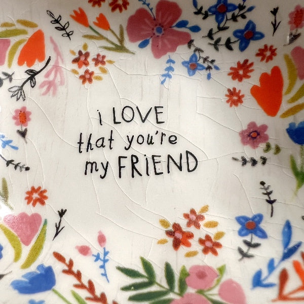Super sød, lille skål fuld af smukke detaljer. Indeni står følgende budskab: I love that you are my friend.