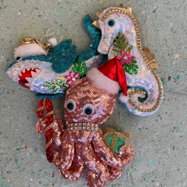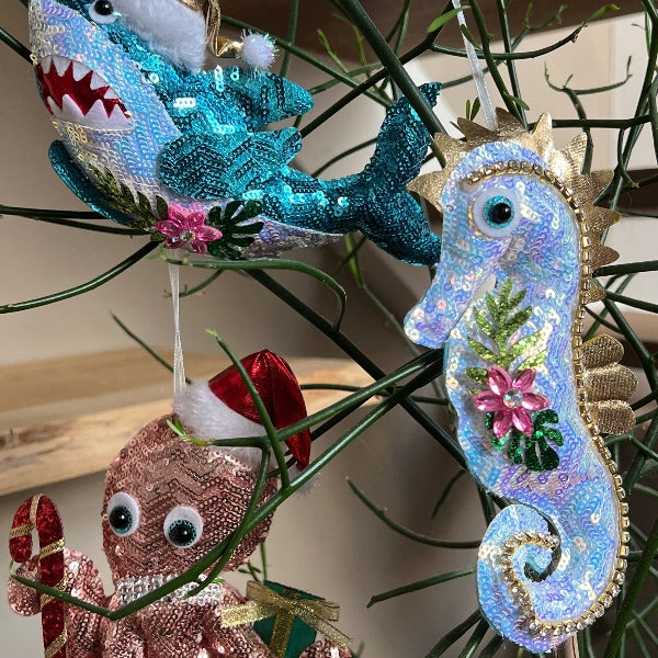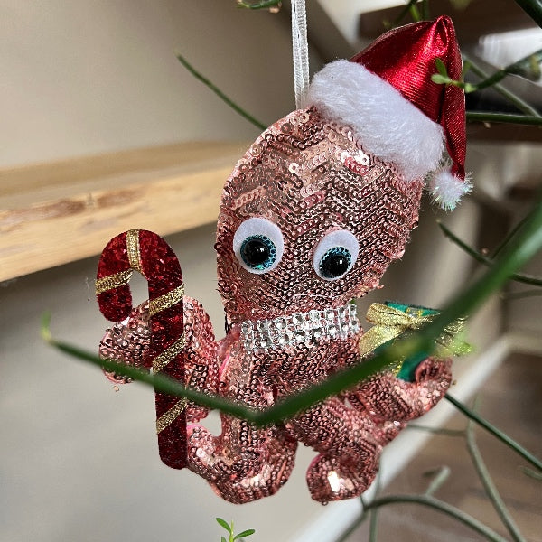 Skøn og hyggelig ophæng til juletræet, en gren, i et vindue eller på børneværelset. Ophænget er håndlavet og i de fineste farver og smykket med glitter, glimmer og finurlige detaljer.