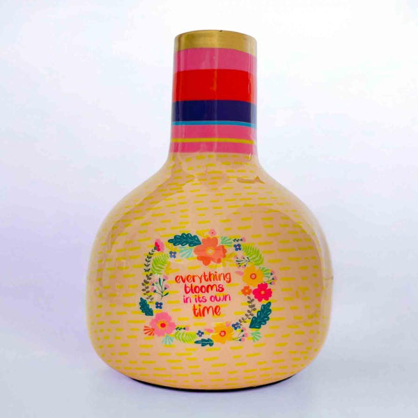 Hvad med denne muntre vase "Everthing blooms at it´s own time" - Perfekt til en lille buket matchende blomster.