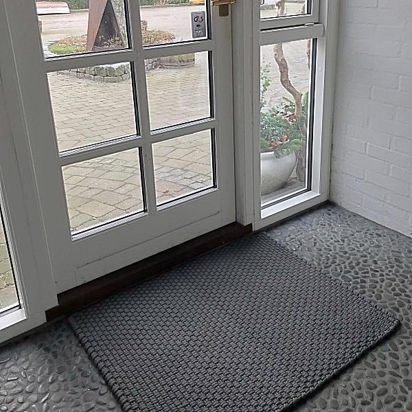 Den håndvævede dørmåtte eller bademåtte UNi byder dig og dine gæster velkommen. Dørmåtten er i et puristisk design, som passer perfekt til alle overflader og forskellige stilarter. Takket være det tykke polypropylengarn med højteknologisk fiber løber vandet uhindret af og kan både bruges indendørs og udendørs. Dørmåtten er regnfast og ekstrem vejrbestandig. Den er UV behandlet, stabil og nem at rengøre. Måtten er håndvævet og bærer det officielle GoodWeave-mærke, hvilket betyder at de laves i en certificeret produktion, og at der ingen børnearbejde er involveret! Fremstillet i høj kvalitet og produceret i Europa.